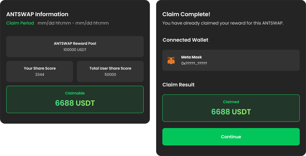 Claim Check the Reward allocated to you for this round and claim it.