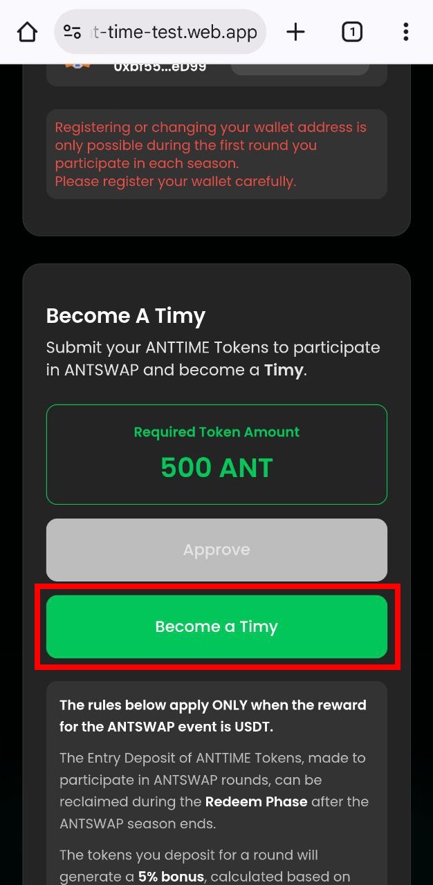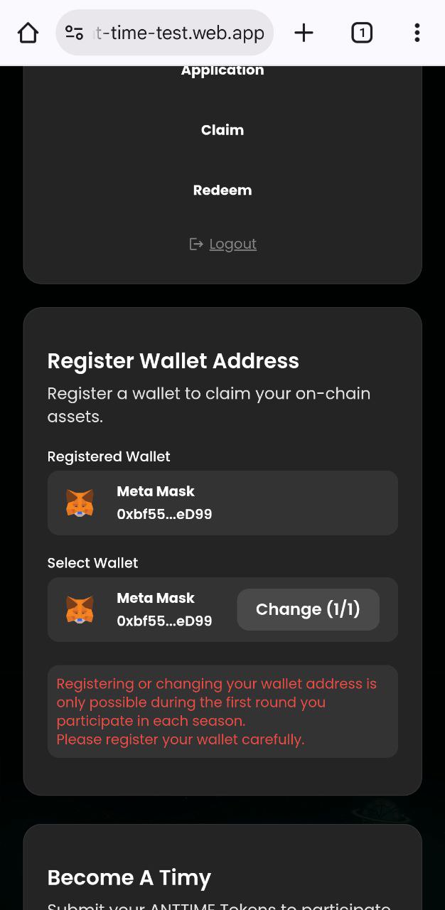 ### Wallet Registration & Become a Timy
