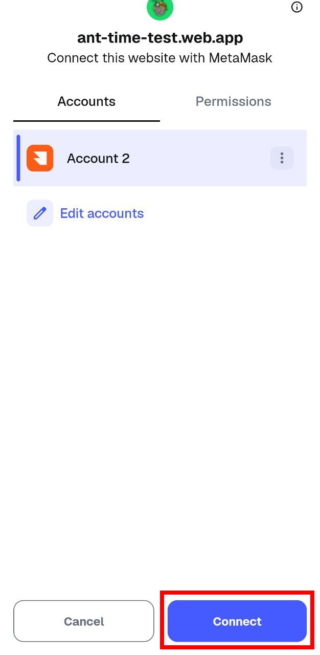 * When the pop-up regarding ANTTIME Token spending permission appears, select **“Confirm”**.