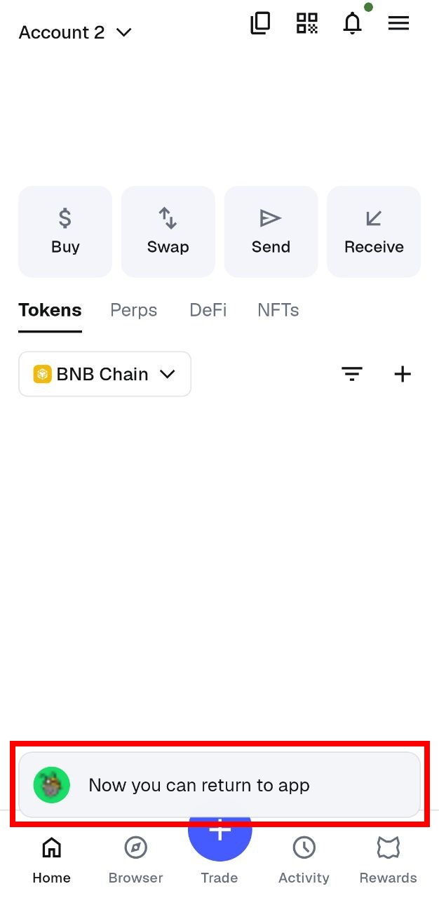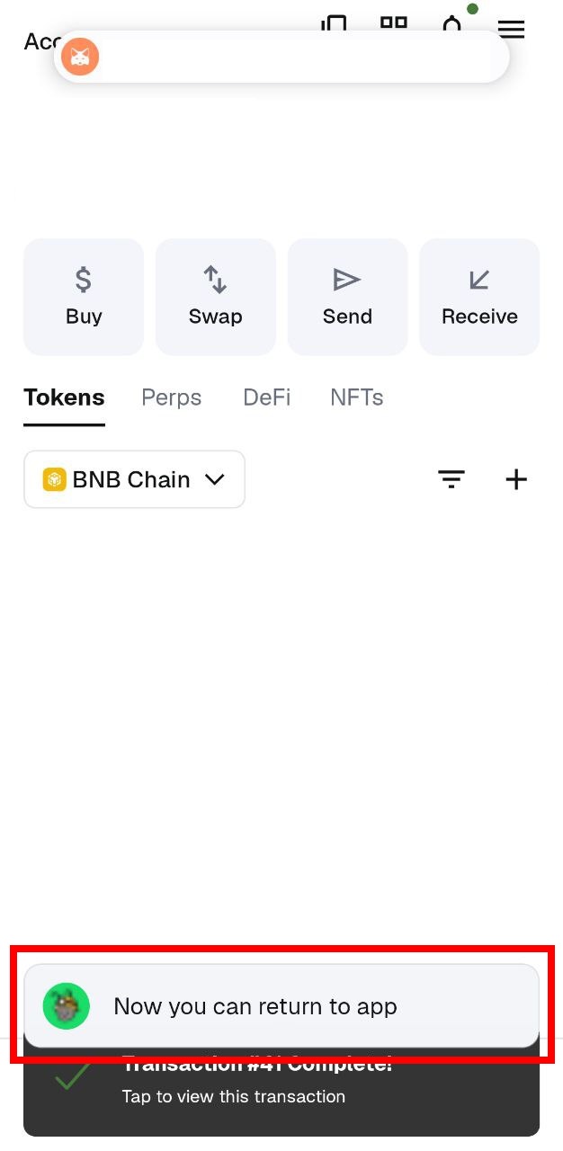 * Confirm the **“Now you can return to app”** message in MetaMask, then return to the Chrome App.