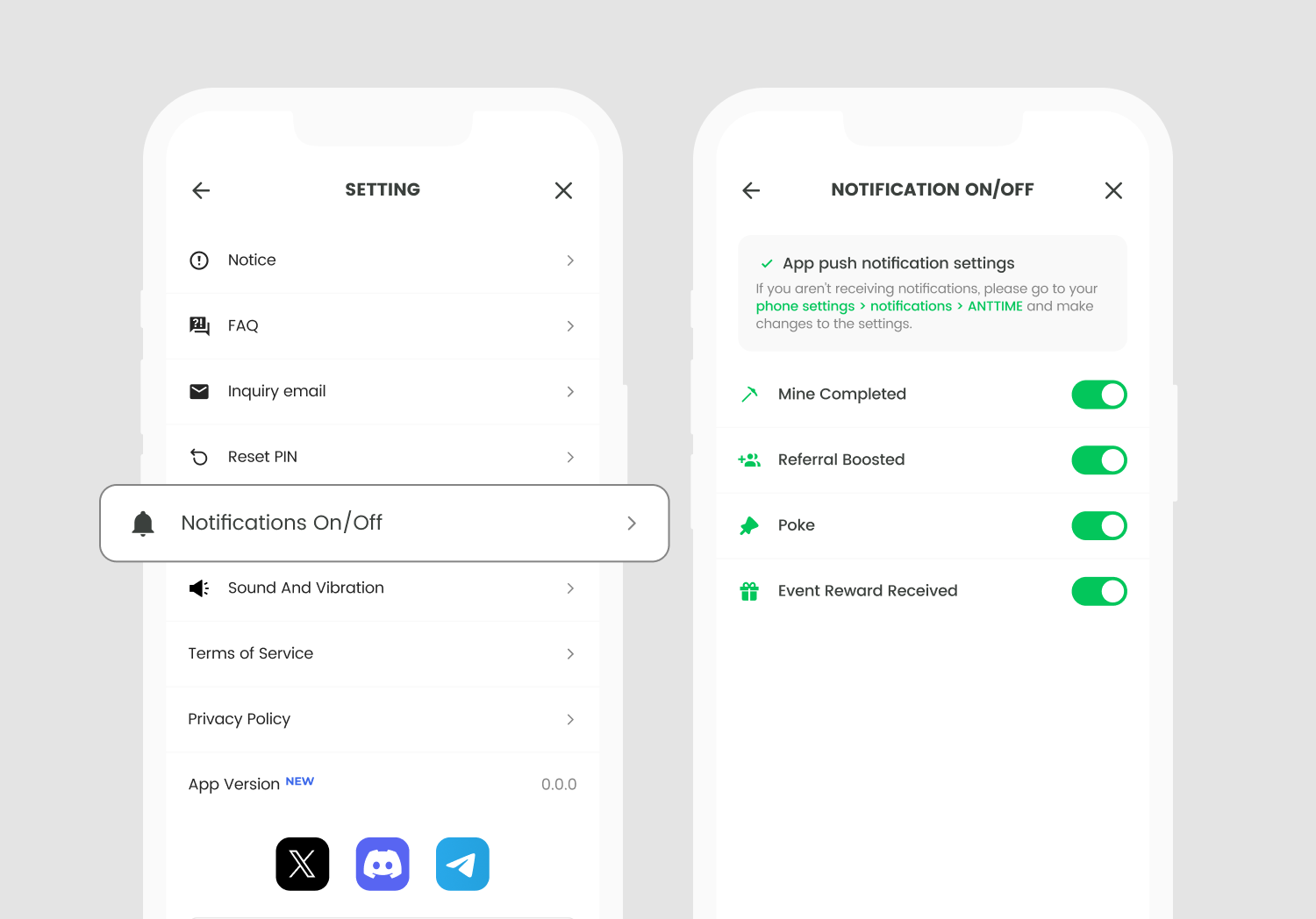You can enable or disable app notifications, and when it's set to "Off," you won't receive any push notifications from the app.