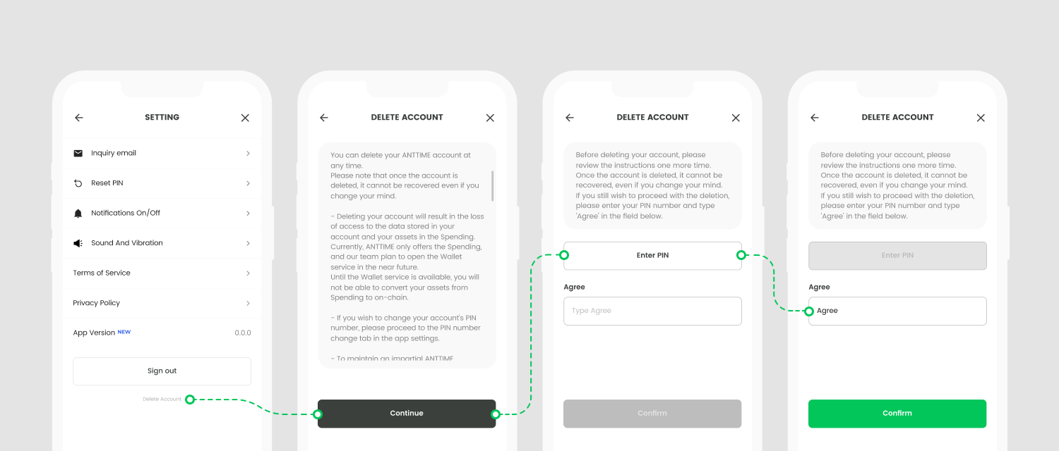 📌 *Once you delete your account, it will not be possible to recover the assets in your Spending. Additionally, please note that once you have withdrawn from the service, rejoining with the same account is not possible. Please keep these points in mind before proceeding with the account deletion.*