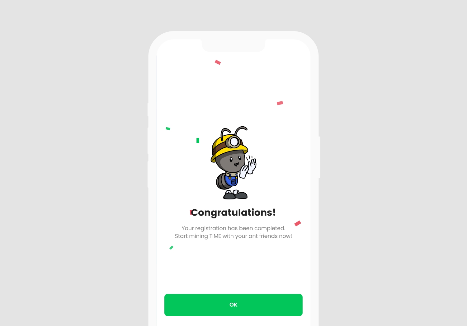 Congratulations on completing all the account creation steps by setting your nickname. 👏👏 Now, let's make your time more valuable with your Ant Friends!