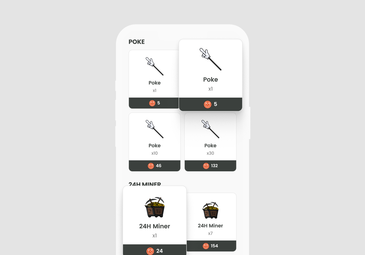 The Poke item, which was previously given for free in quantities of 3 daily, is now available for purchase with CLOCKs in the SHOP. Use the Poke item to awaken inactive friends.