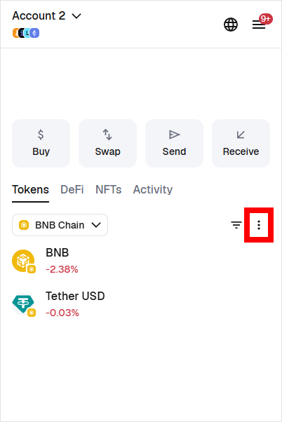 Select the chain where you want to add the token. Since the ANTTIME Token is issued on the BNB Chain, please make sure to select **BNB Chain**.